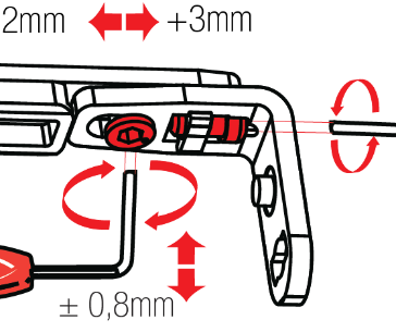 Kanadın kasaya daha sıkı basmasını veya sıkı olan baskının gevşetilmesini sağlamak amacıyla donanım üzerindeki vida tornavida yardımıyla ayarlanabilir.